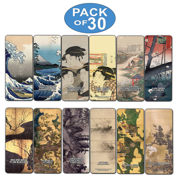 Creanoso Japanese Geisha Theme Classic Art Paintings Bookmarks (30-Pack) – Stocking Stuffers Gift for Men & Women, Teens - Rewards Gifts – Awesome Art Bookmark Collection – Inspiring Art Impressions