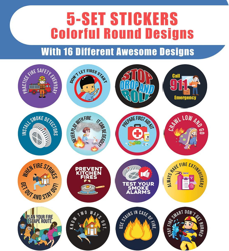 A fun, inexpensive way to add a decorative, notes, and stationery. Delight yourself with uplifting messages designs that are very encouraging. FIRE SAFETY STICKERS (5 Sets X 16 Designs) perfect for giveaways, behavior incentives, prizes! These stickers are acid-free, nontoxic, and safe for use on photos.