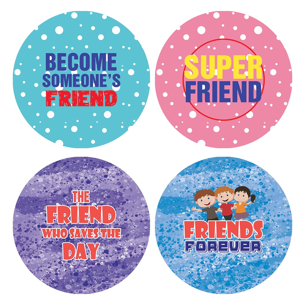 - Sixteen colorful and inspiring round shape sticker designs for wall and surface decorations - a perfect design to give during classroom school activities, birthdays, anniversaries, family day, and any other special occasions