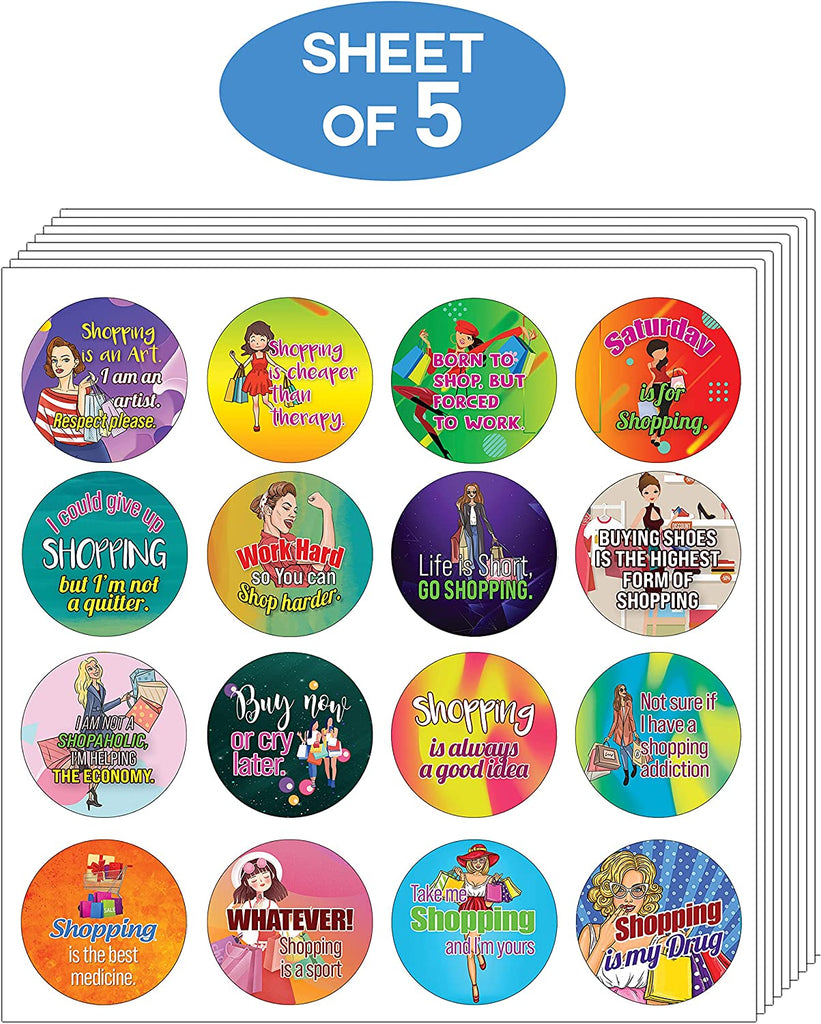Funny Shopaholic Quotes Stickers (5 Sets X 16 Designs)