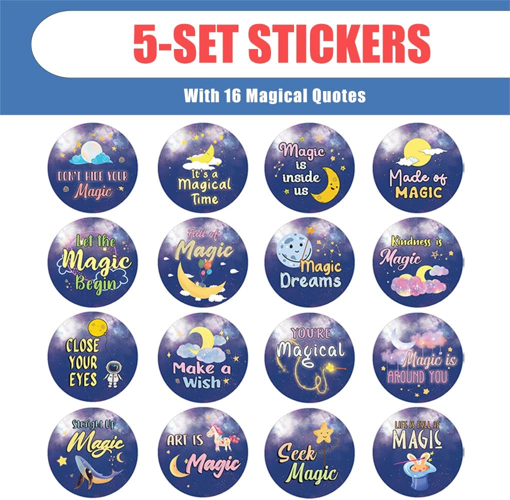 A fun, inexpensive way to add a decorative, notes, and stationery. Delight yourself with uplifting messages designs that are very encouraging. Awesome Magical Stickers (5 Sets X 16 Designs) perfect for giveaways, behavior incentives, prizes! These stickers are acid-free, nontoxic, and safe for use on photos.