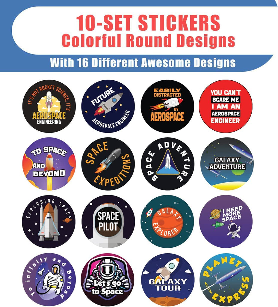 Creanoso Aerospace Stickers (10 Sets X 16 Designs) – Sticker Card for Kids – Awesome Stocking Stuffers Gifts for Boys & Girls – Classroom Home Rewards Enticements