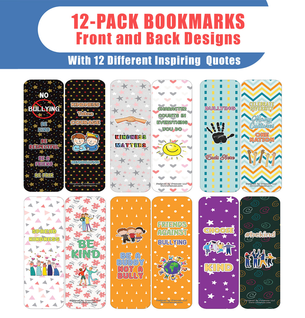 Creanoso Anti-Bullying Bookmarks Cards Series 2 (12-Pack) - Encouraging Bookmarks for Everyday Use No BULLYING BE KIND BE RESPECTFUL BE A FRIEND BE FAIR KINDNESS Takes COURAGE #ENDBULLYING KINDNESS MATTERS CHARACTER COUNTS IN EVERYTHING YOU DO Bullying Ends Here CELEBRATE DIVERSITY MANY CULTURES ONE NATION SPREAD KINDNESS BE KIND BE A BUDDY NOT A BULLY FRIENDS AGAINST BULLYING CHOOSE KIND #bekind