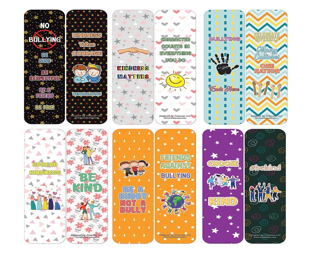 - Creanoso Anti-Bullying Bookmarks - Assorted Gift Set Card Pack (6 Designs x 2 pcs each = Total 12 pcs)