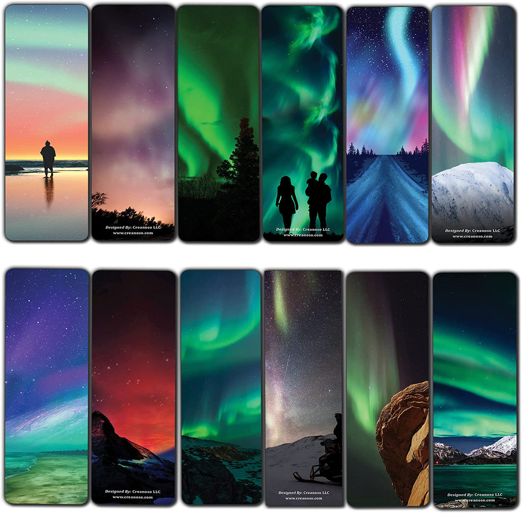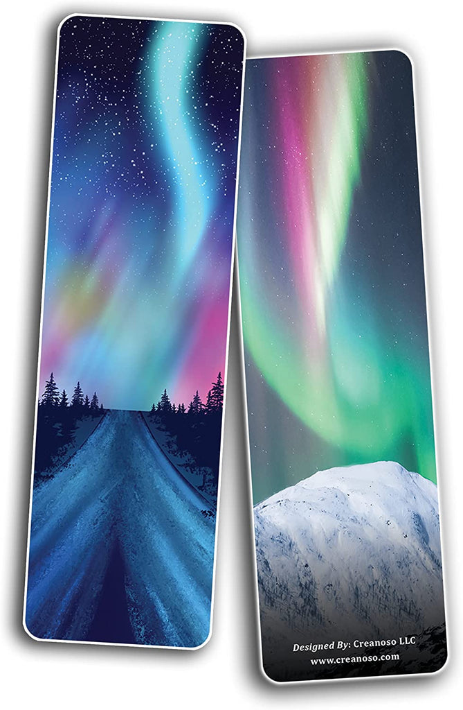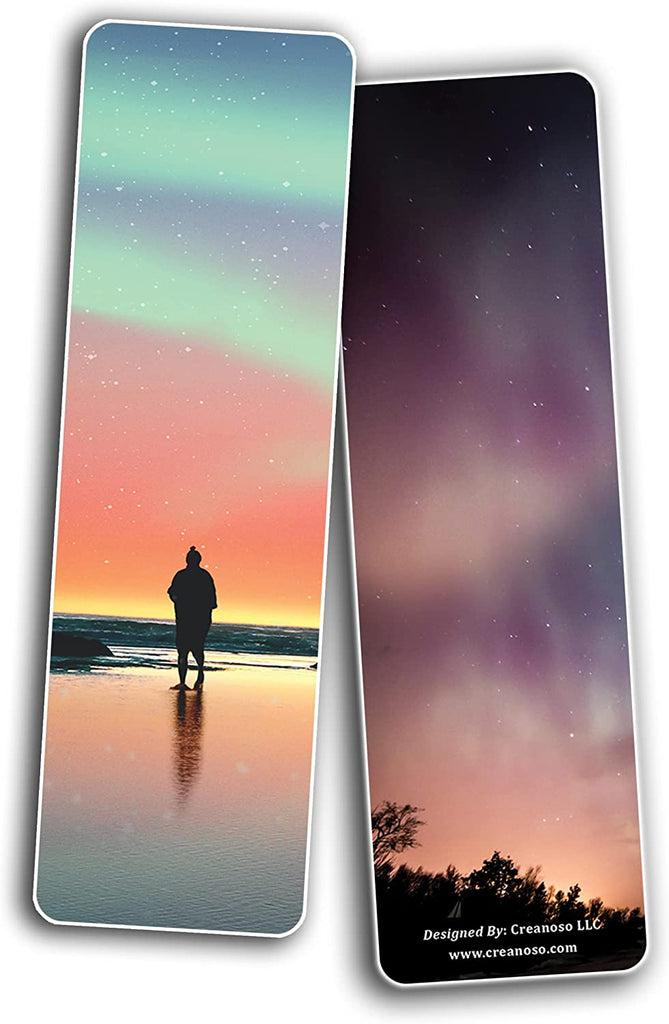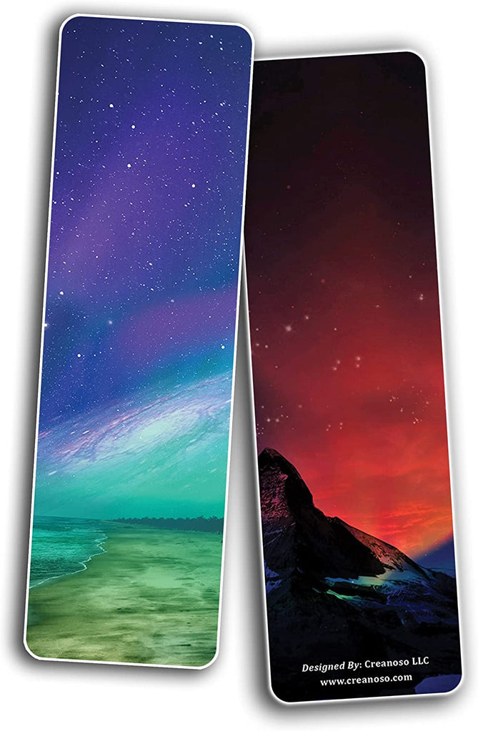 Creanoso Aurora Night Sky Bookmarks (5 Sets x 6 Cards) – Daily Inspirational Card Set – Interesting Book Page Clippers – Great Gifts for Kids and Teens