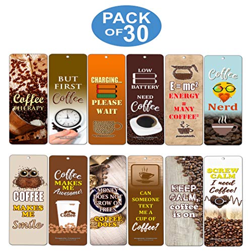 Creanoso Awesome Bookmark Coffee Lover Series III Bookmarkers for Men, Women (30-Pack) – Premium Gift Set – Stocking Stuffers Gift for Coffee Lovers