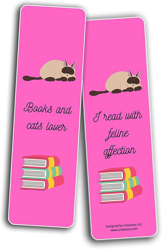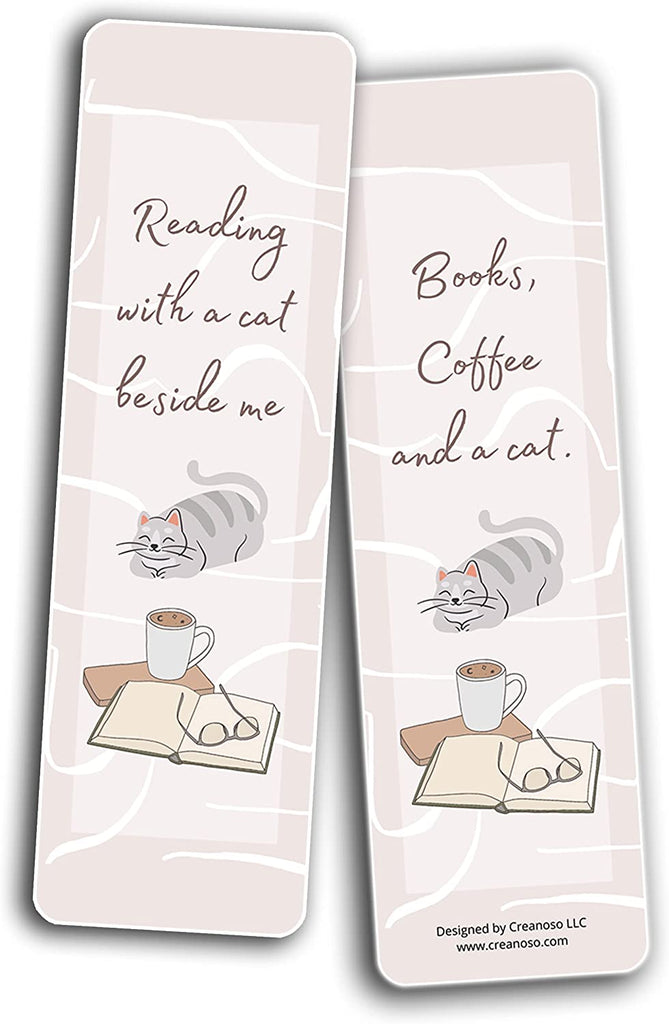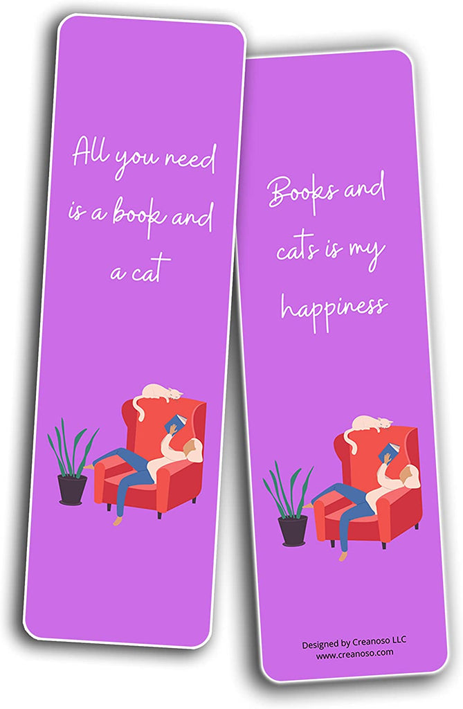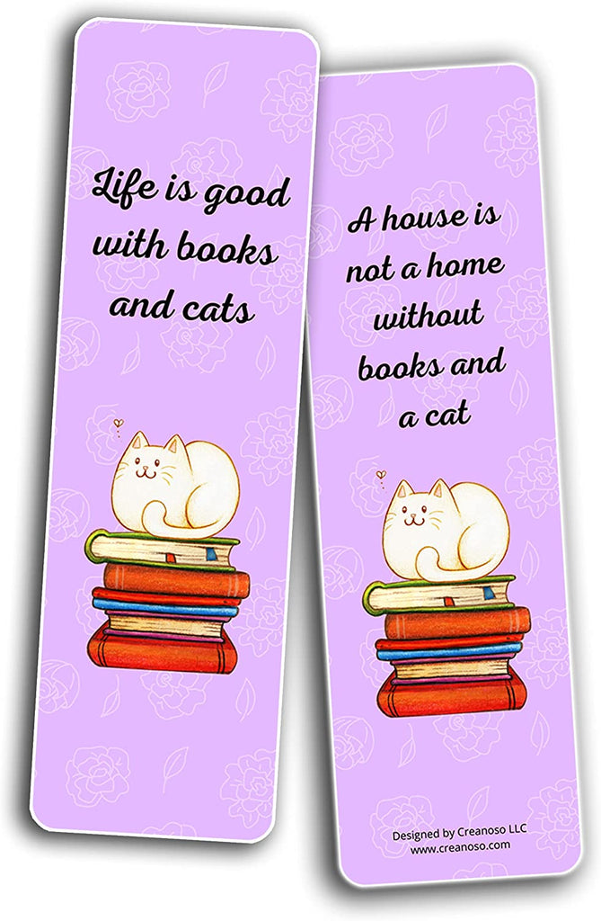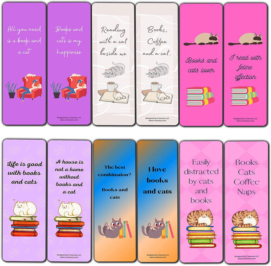 Creanoso Books and Cats Enthusiasts Bookmarks (10-Sets X 6 Cards) – Daily Inspirational Card Set – Interesting Book Page Clippers – Great Gifts for Adults and Teens