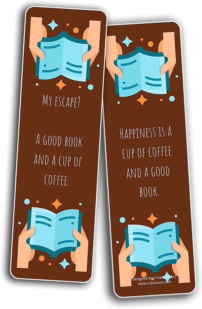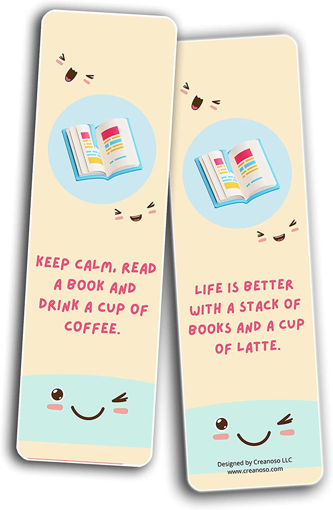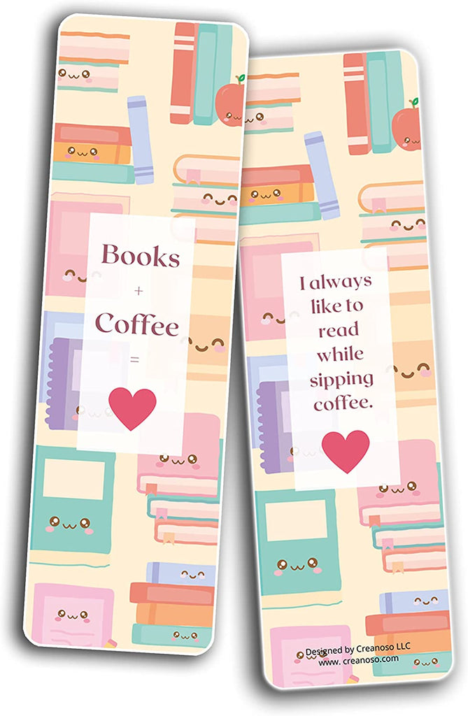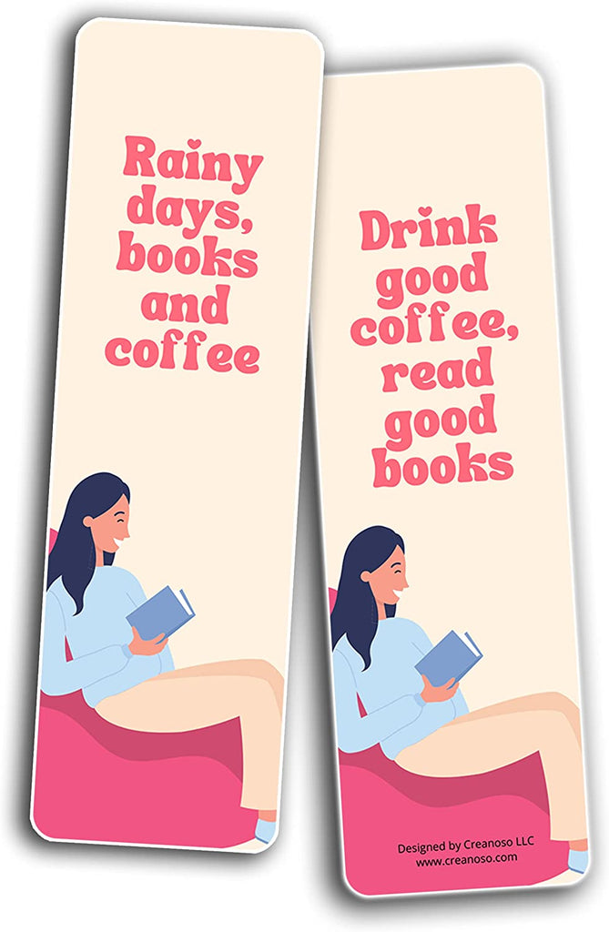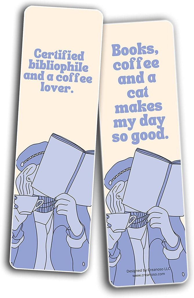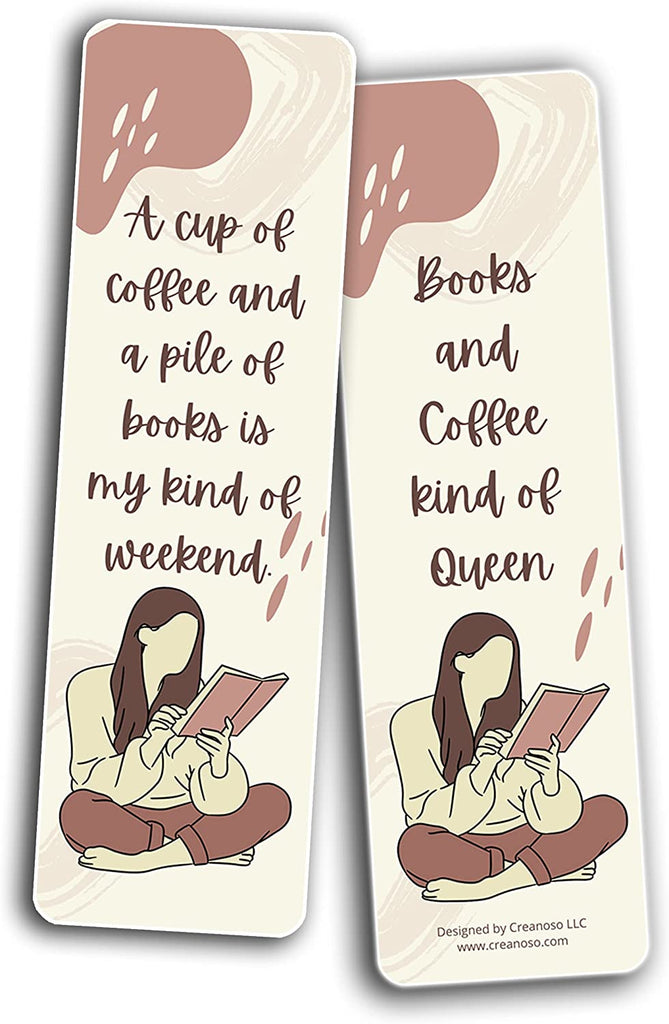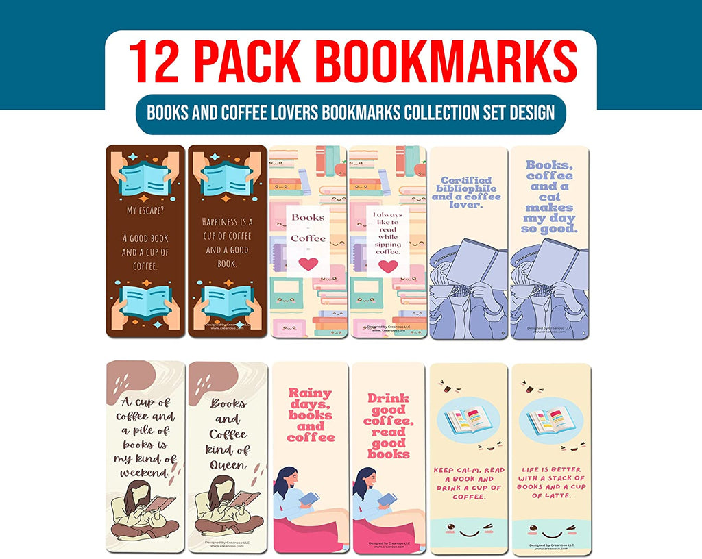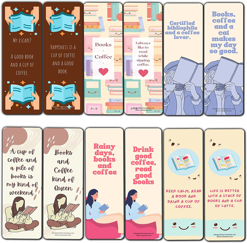 Creanoso Books and Coffee Lovers Bookmarks (2-Sets X 6 Cards) – Daily Inspirational Card Set – Interesting Book Page Clippers – Great Gifts for Adults and Teens