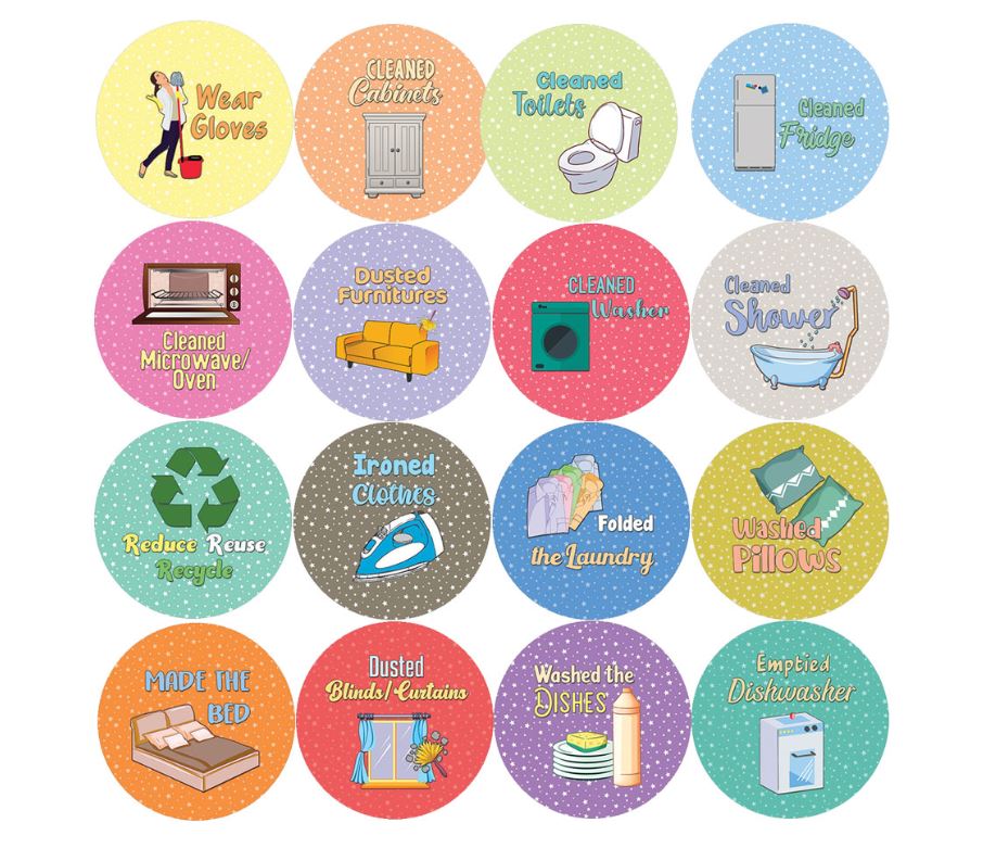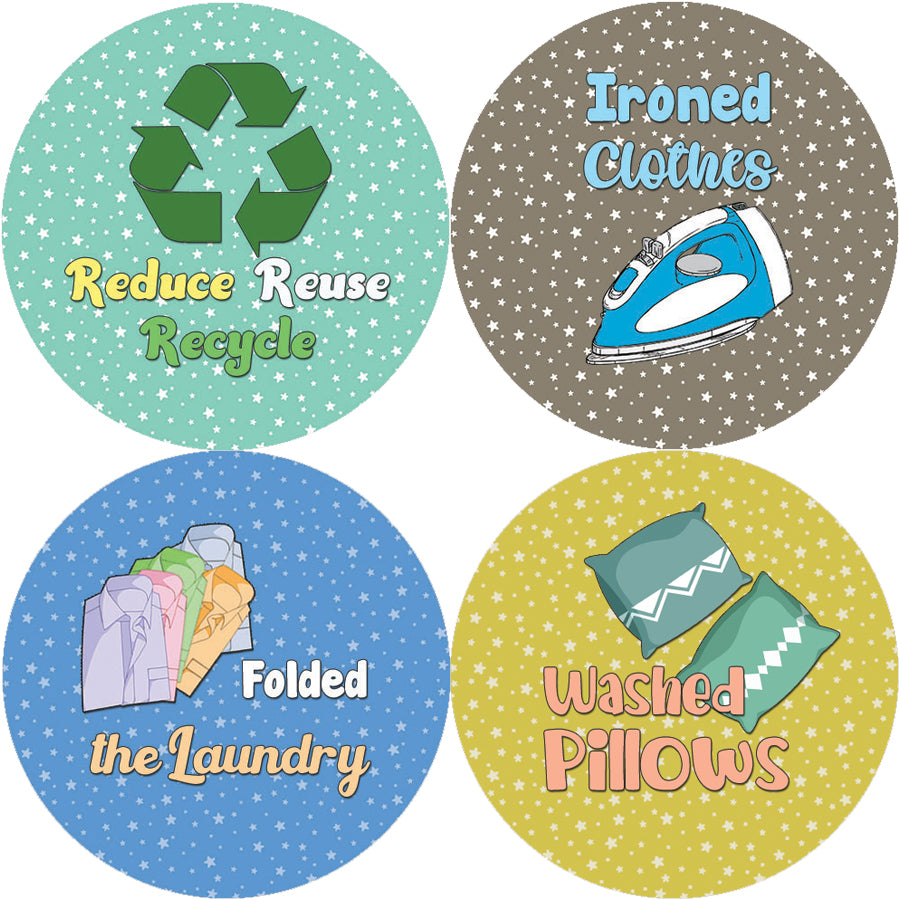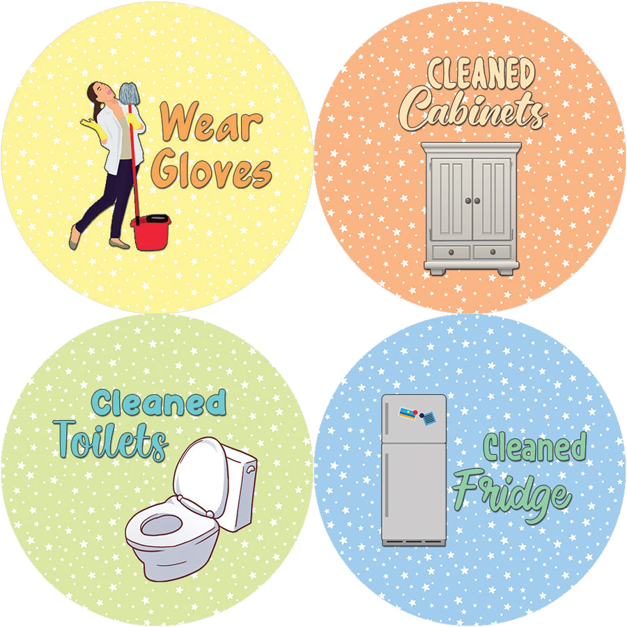 A fun, inexpensive way to add a decorative, notes, and stationery. Delight yourself with uplifting messages designs that are very encouraging. Cleaning Duty Rewards Stickers (20-Set) perfect for giveaways, behavior incentives, prizes! These stickers are acid-free, nontoxic, and safe for use on photos.