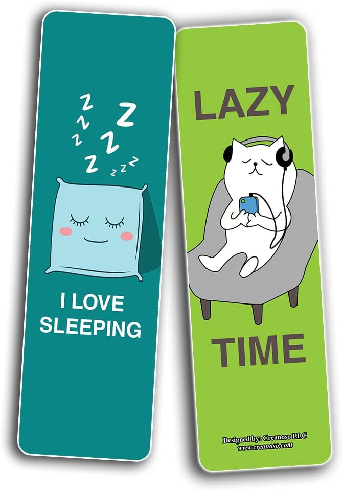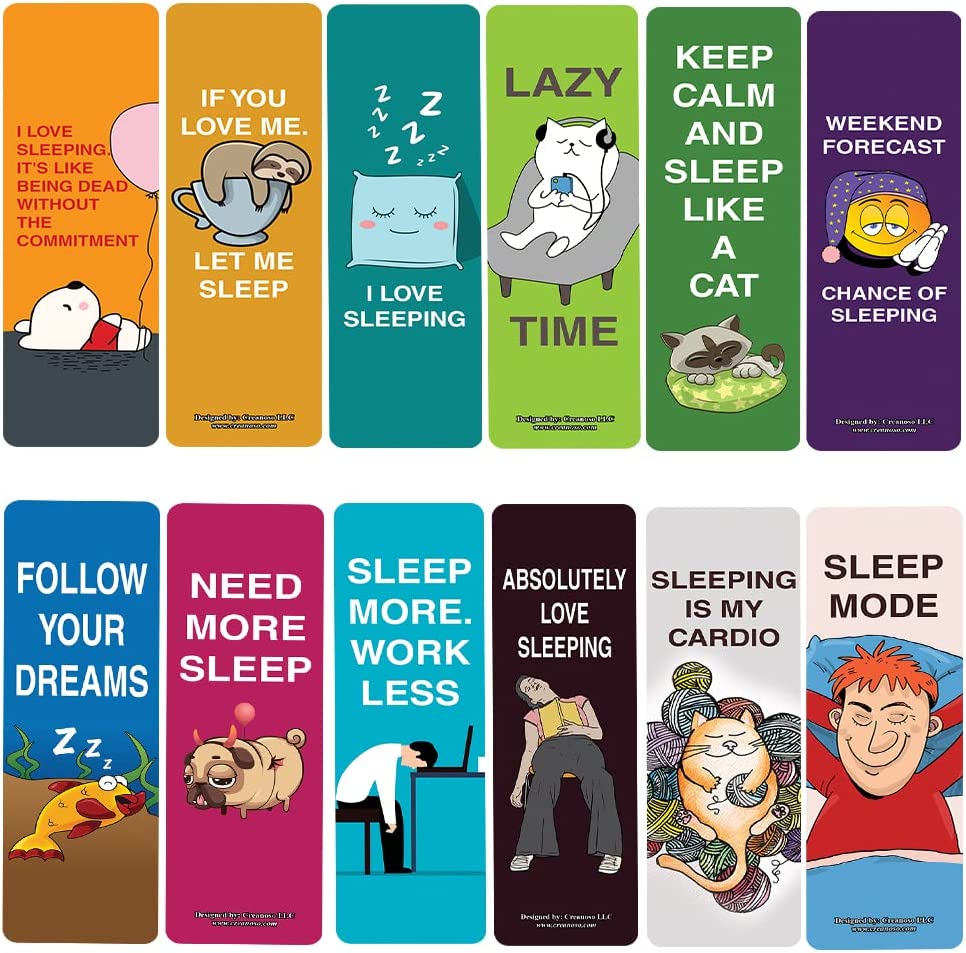 Creanoso Cute I love sleeping Bookmarks (2-Sets X 6 Cards)– Daily Inspirational Card Set – Interesting Book Page Clippers – Great Gifts for Kids and Teens