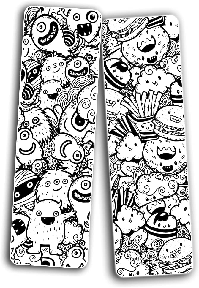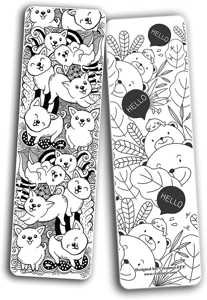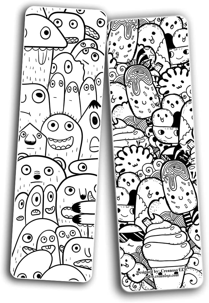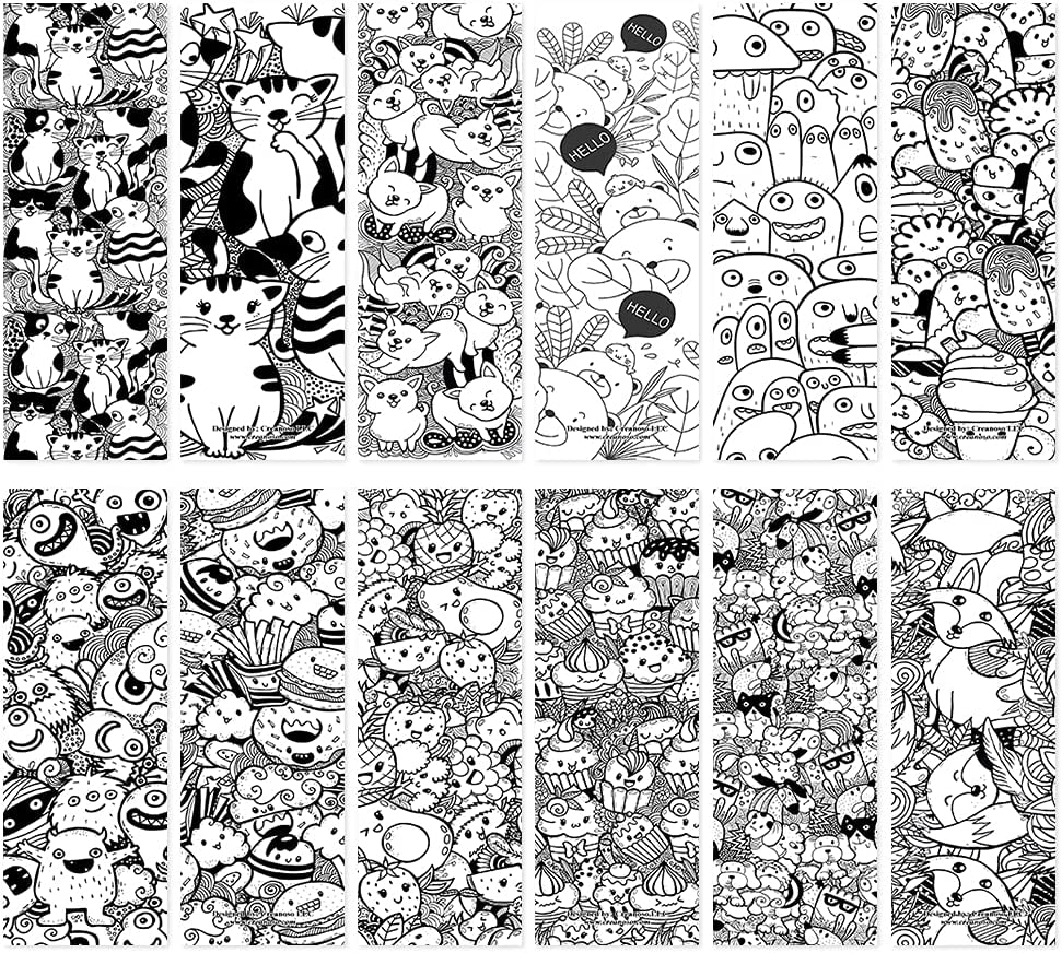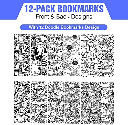 Creanoso Doodle Bookmarks (2-Sets X 6 Cards) - Stocking Stuffers Cute Gift Ideas for Children, Teens, Young Readers