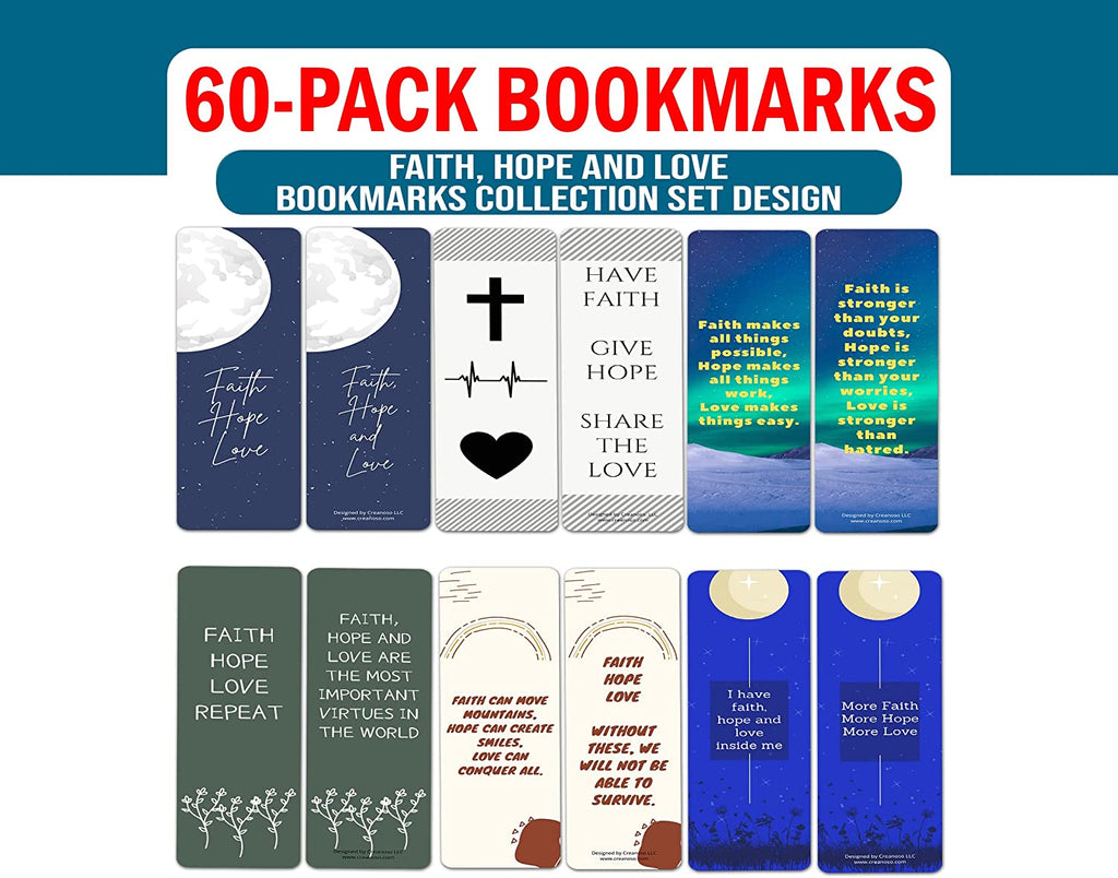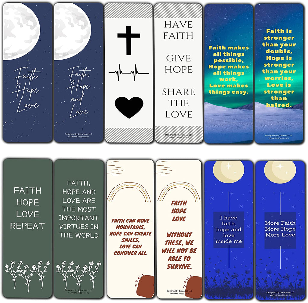 Creanoso Faith, Hope and Love Bookmarks (10-Sets X 6 Cards) – Daily Inspirational Card Set – Interesting Book Page Clippers – Great Gifts for Adults and Teens