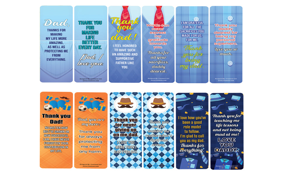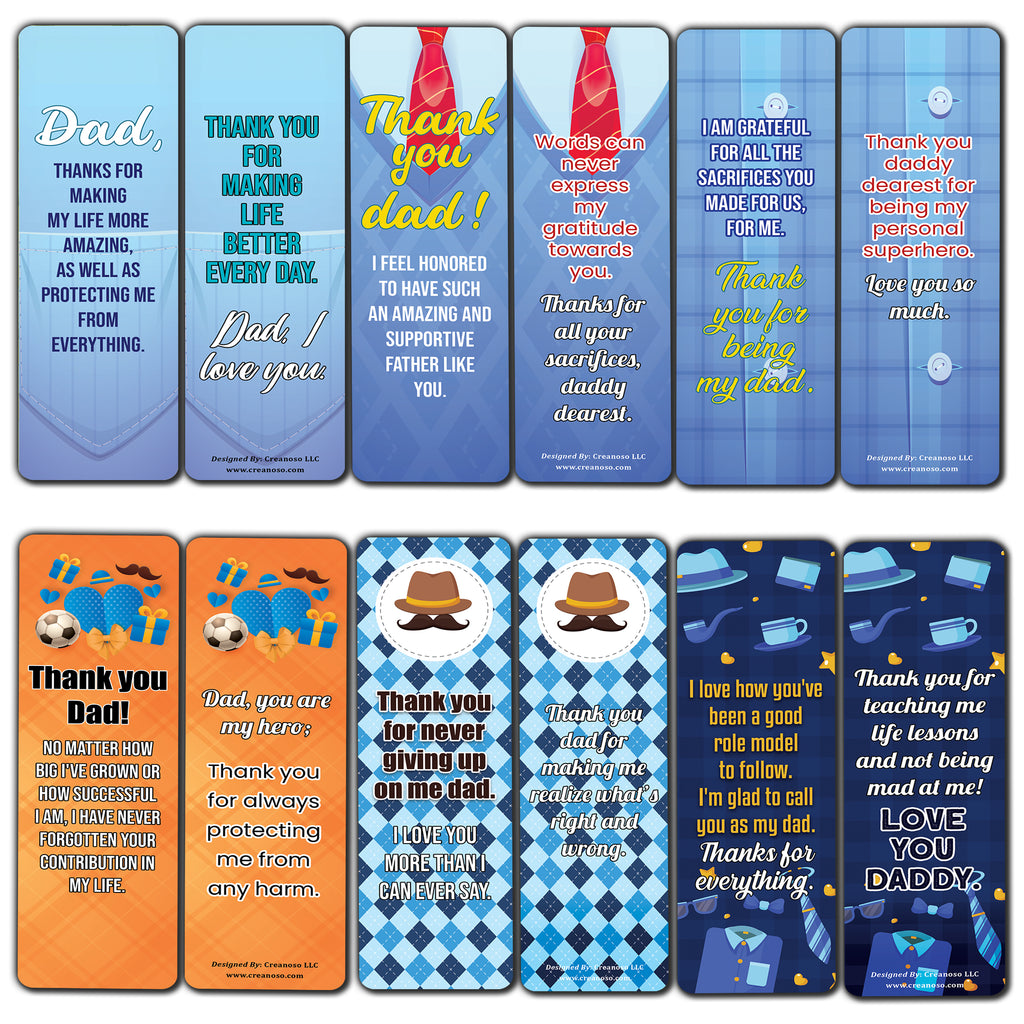 Creanoso Father appreciation bookmarks (10-Sets X 6 Cards) – Daily Inspirational Card Set – Interesting Book Page Clippers – Great Gifts for Adults and Professionals