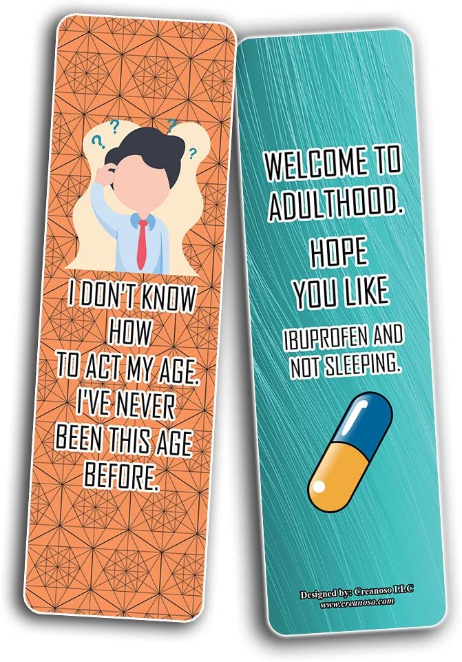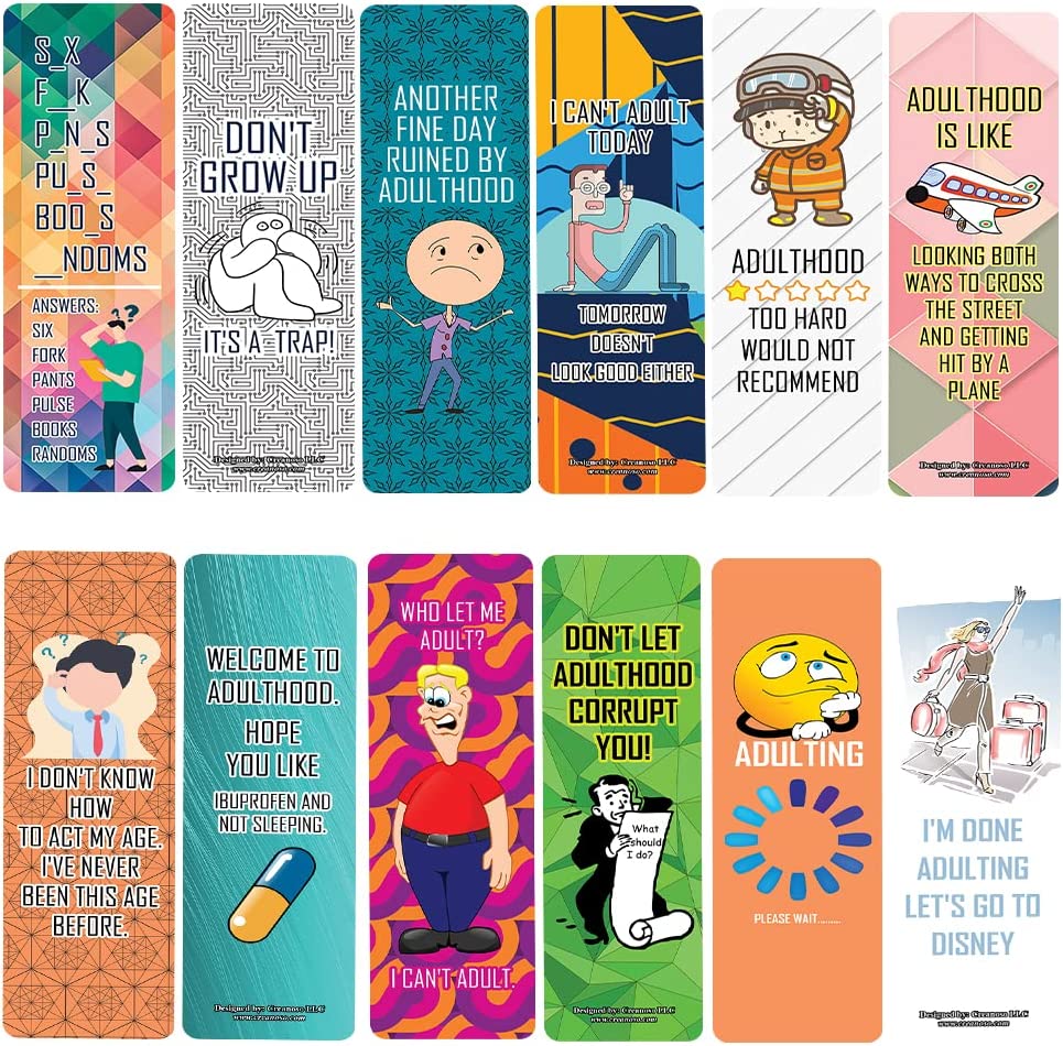 Creanoso Funny Adulthood Bookmarks (2-Sets X 6 Cards) – Daily Inspirational Card Set – Interesting Book Page Clippers – Great Gifts for Adults