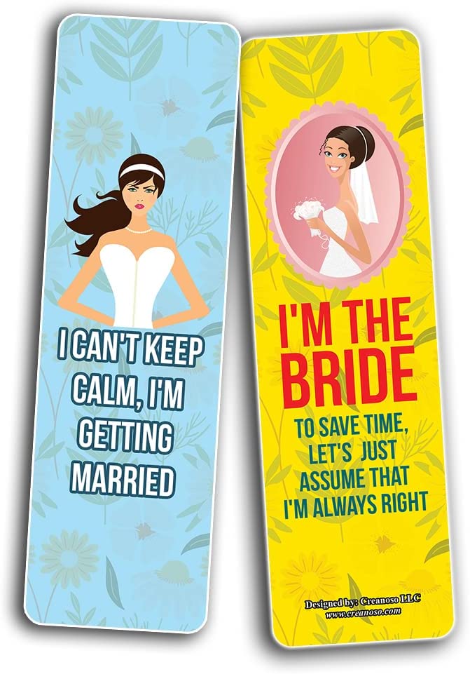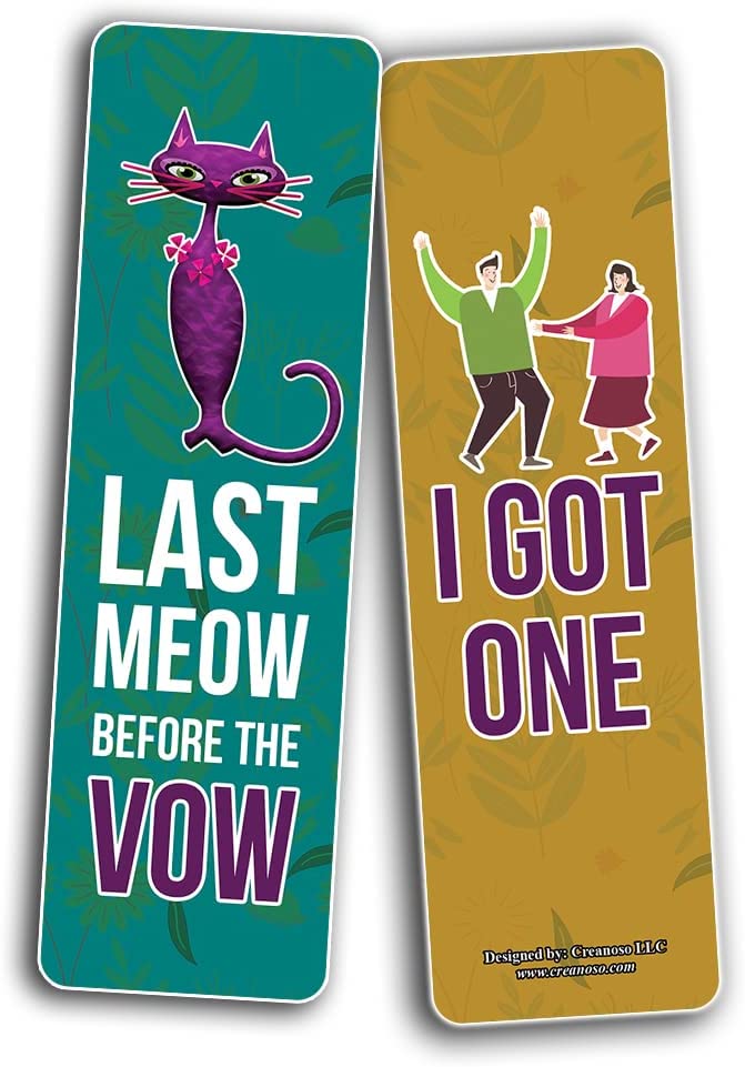 Creanoso Funny Bridal Shower Bookmarks (10-Sets X 6 Cards) – Daily Inspirational Card Set – Interesting Book Page Clippers – Great Gifts for Adults and Teens