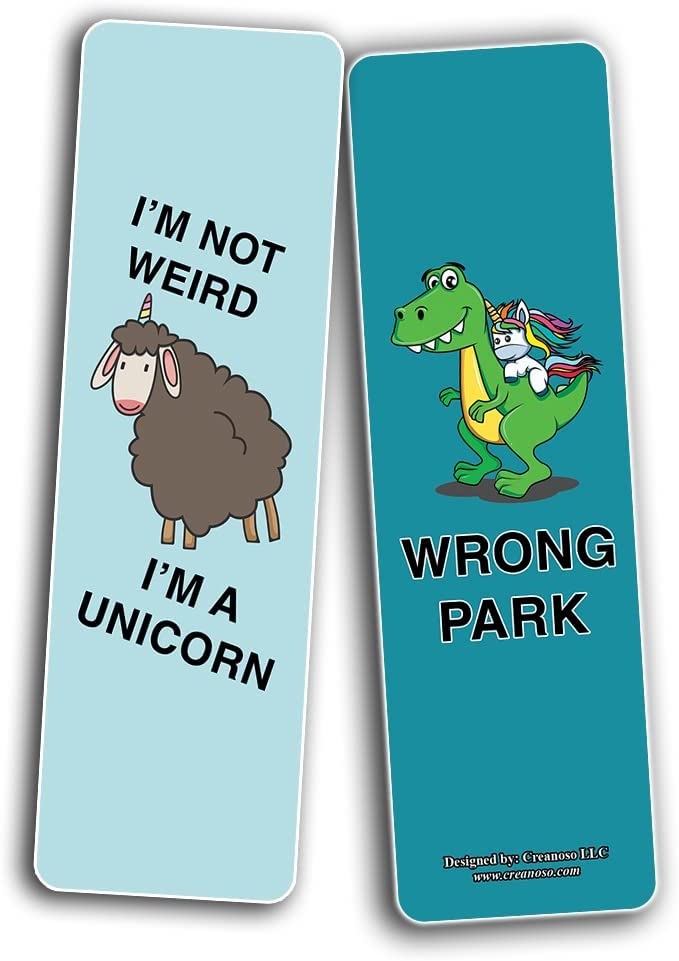 Creanoso Funny Cute Unicorn Bookmarks (5-Sets X 6 Cards) – Daily Inspirational Card Set – Interesting Book Page Clippers – Great Gifts for Kids and Teens