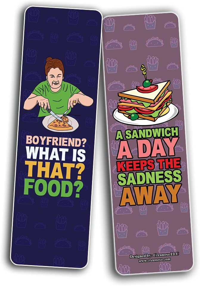 Creanoso Funny Food Saying Bookmarks (10-Sets X 6 Cards) – Daily Inspirational Card Set – Interesting Book Page Clippers – Great Gifts for Adults and Teens