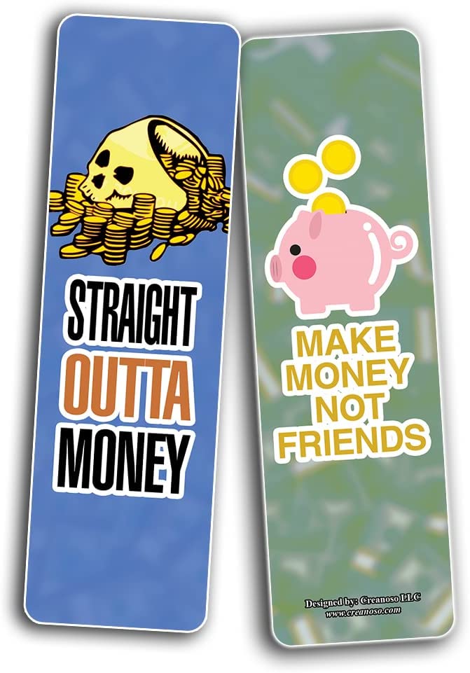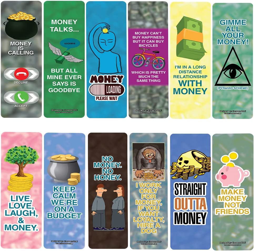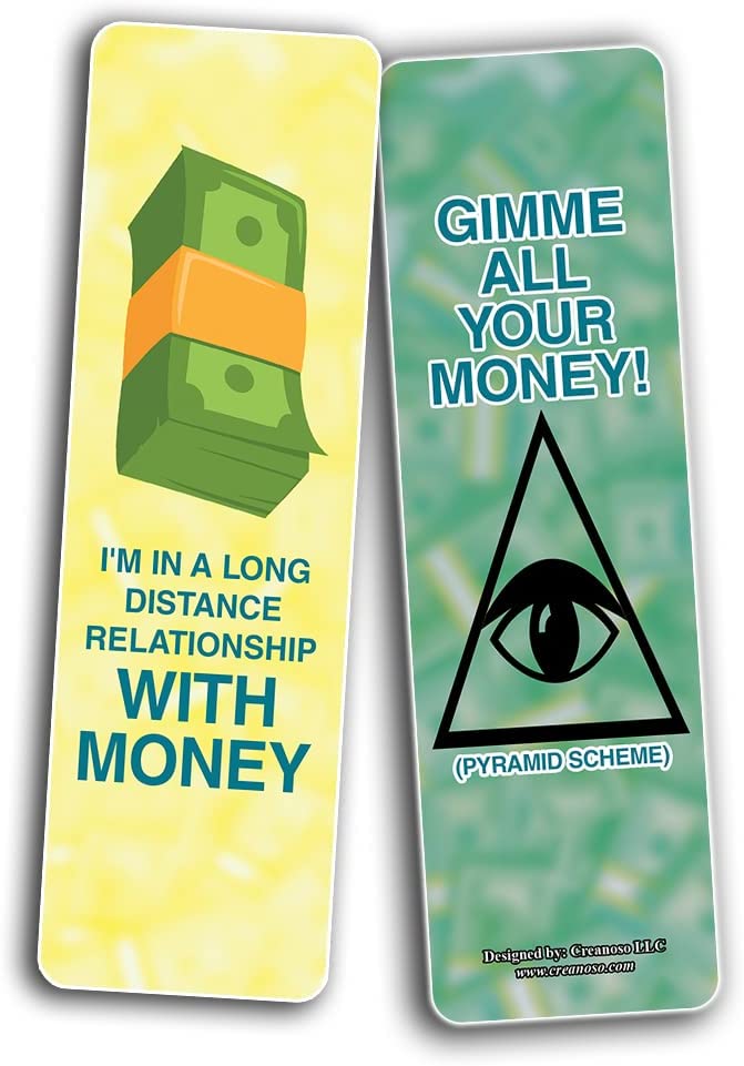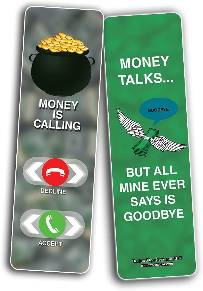 Creanoso Funny Money Bookmarks (10-Sets X 6 Cards) – Daily Inspirational Card Set – Interesting Book Page Clippers – Great Gifts for Adults and Teens