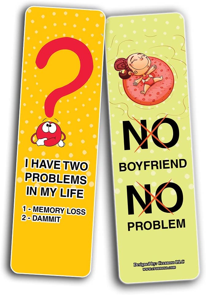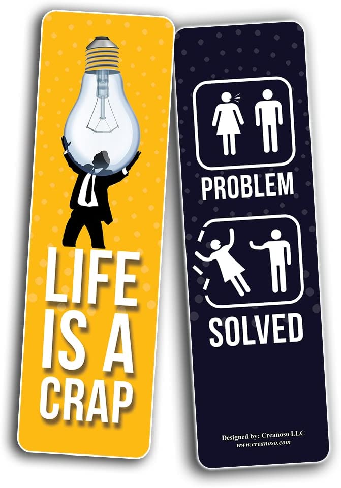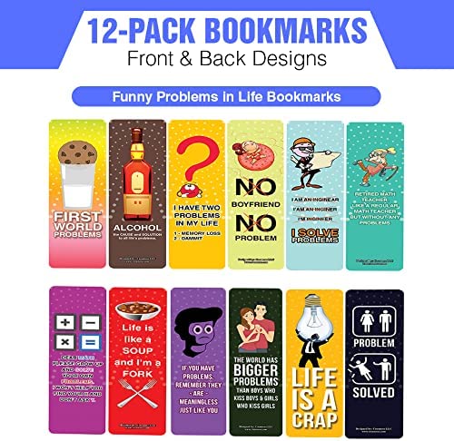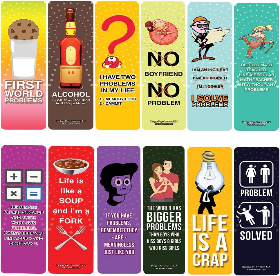 Creanoso Funny Problems in Life Bookmarks (2-Sets X 6 Cards) – Daily Inspirational Card Set – Interesting Book Page Clippers – Great Gifts for Adults and Teens