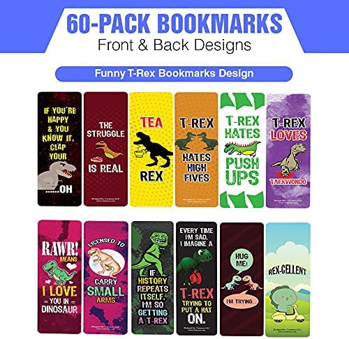 Creanoso Funny T-Rex Bookmarks (60-Pack) - Premium Quality Bulk Buy Value Gift Pack Personal Collection
