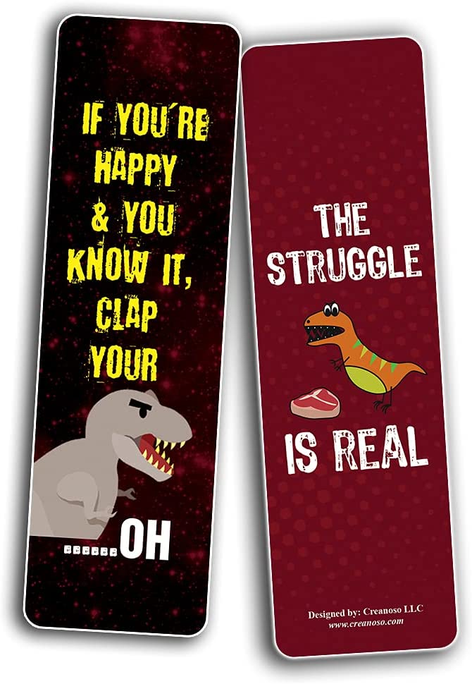 - Book lovers reading delight bookmarkers – perfect bookmark literary reading compliment for bookworms and bibliophiles – funny dinosaur quotes for a motivational reading session.