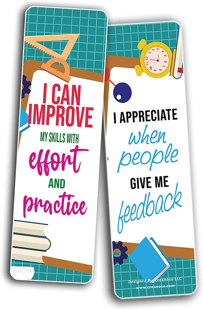 Creanoso Growth Mindset Bookmarks (10-Sets X 6 Cards) – Daily Inspirational Card Set – Interesting Book Page Clippers – Great Gifts for Children and Teens
