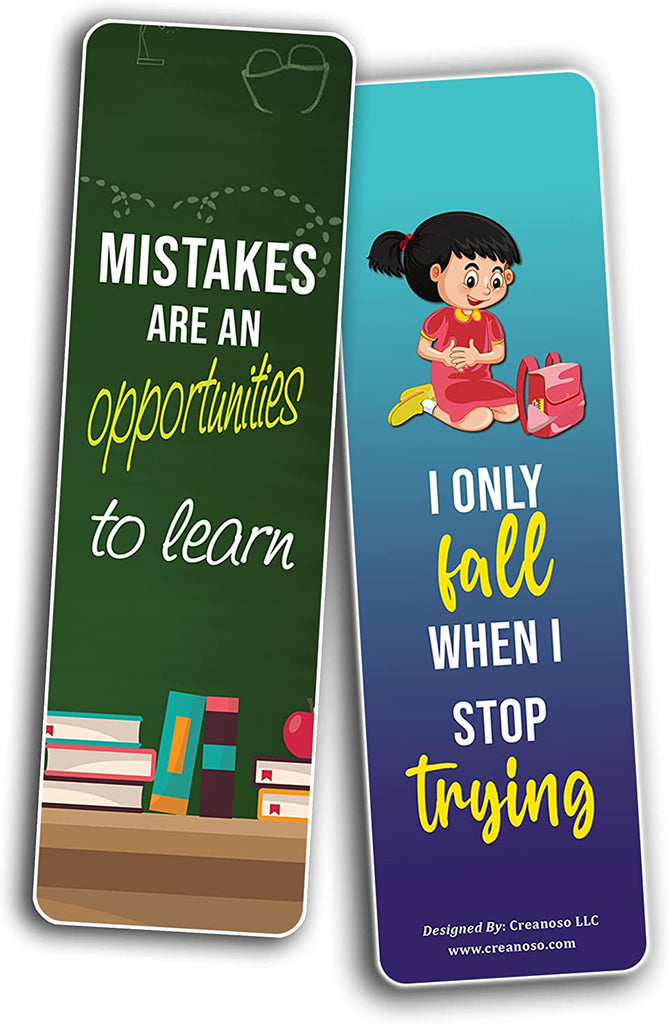 Creanoso Growth Mindset Bookmarks (2-Sets X 6 Cards) – Daily Inspirational Card Set – Interesting Book Page Clippers – Great Gifts for Children and Teens