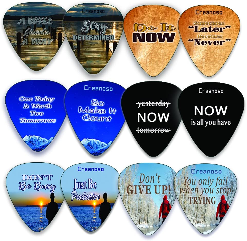 Creanoso Guitar Picks (12-Pack) - Motivational Inspirational Saying Quotes – Inspiringly Cool Gifts Love for Men Women Youth - Great Gift Ideas for Anniversary, Birthday, Chrismas Stuffers