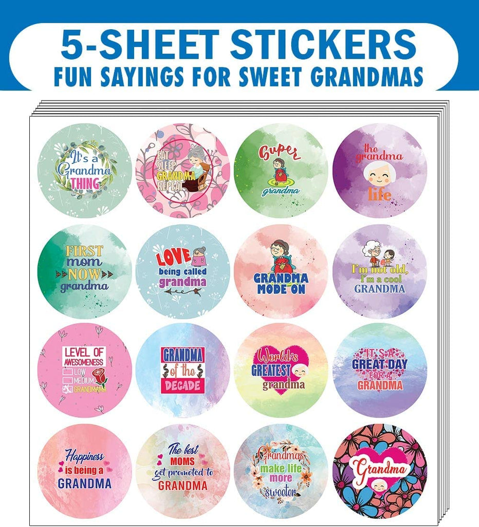 Creanoso I Am A Sweet Grandmama Stickers (5 Sets X 16 Designs) – Sticker Card Giveaways for Granparents – Awesome Stocking Stuffers Gifts for Grandparents