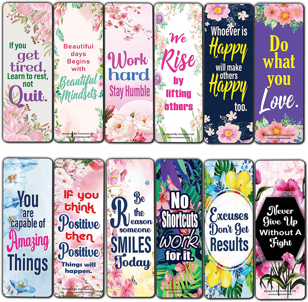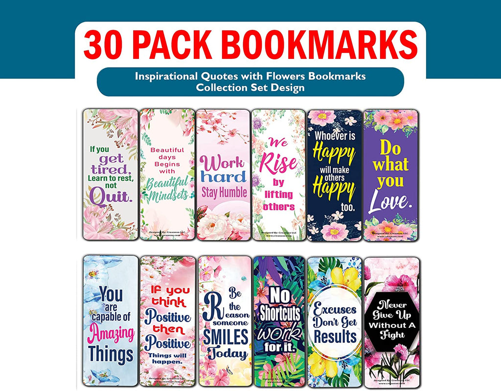 Creanoso Inspirational Quotes with Flowers Bookmarks (5-Sets X 6 Cards) – Daily Inspirational Card Set – Interesting Book Page Clippers – Great Gifts for Kids and Teens