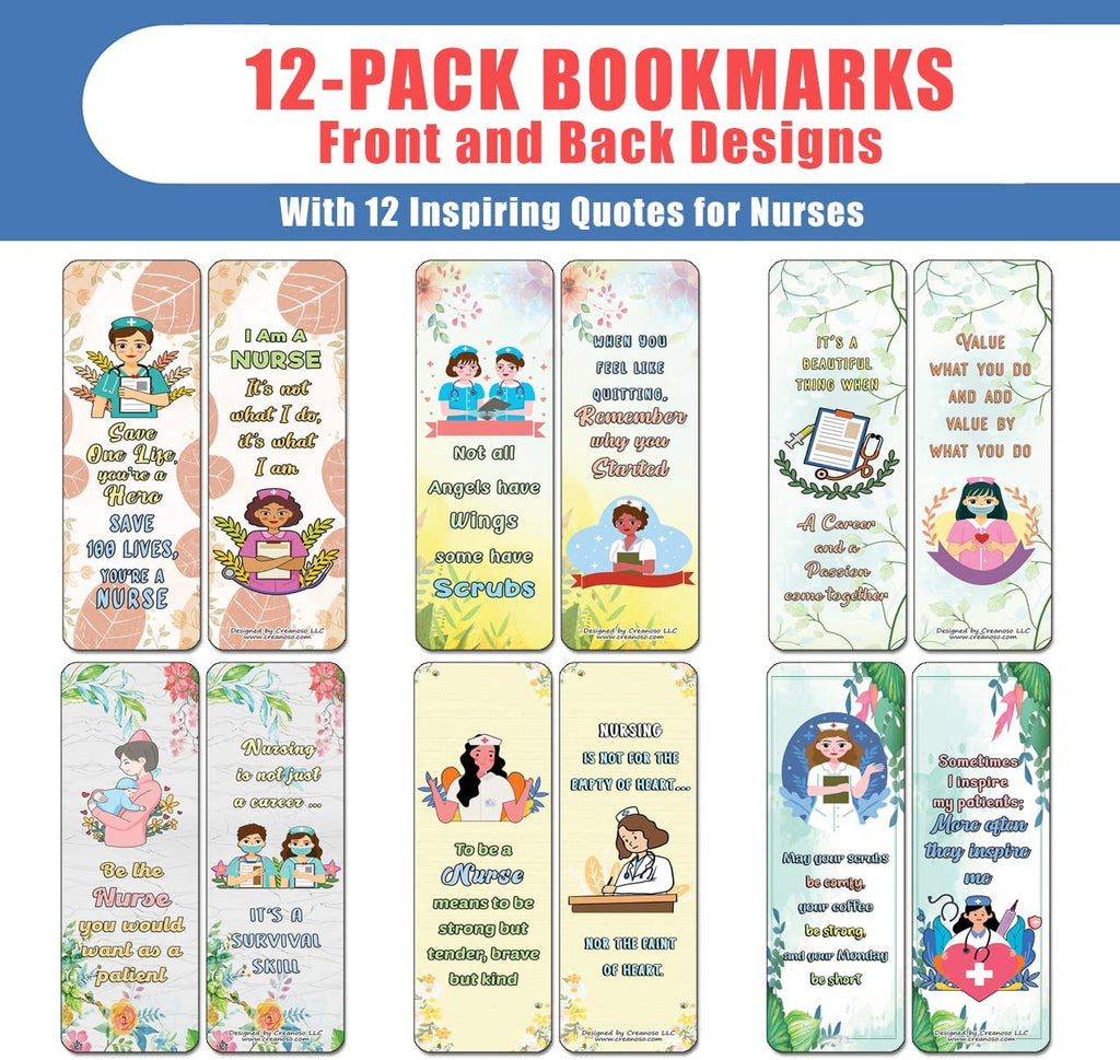 Creanoso Motivation Nurse Life Quotes Bookmarks (2-Sets X 6 Cards) – Daily Inspirational Card Set – Interesting Book Page Clippers – Great Gifts for Adults and Teens