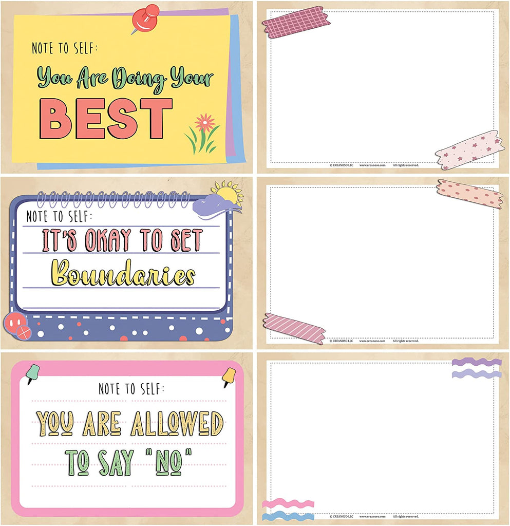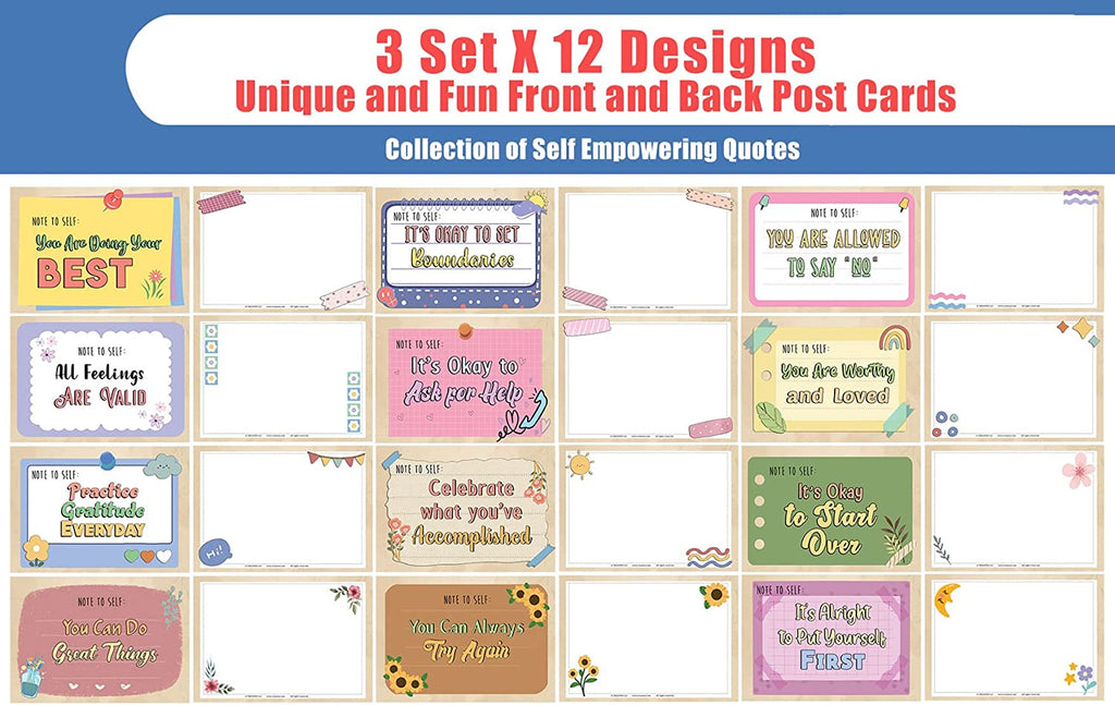 Creanoso Note to Self - Self Care Postcards (3 Set X 12 Designs) - Unique Cool Giveaways for Kids, Adults, Boys,Girls,Women– Great Greeting Cards Collection Set