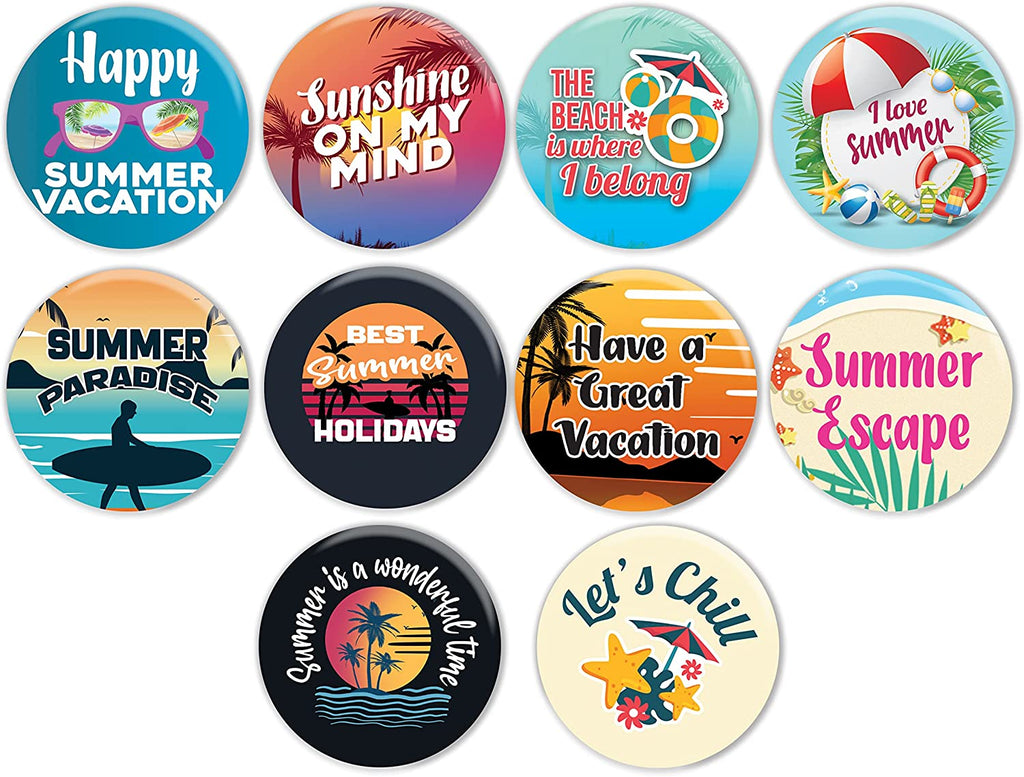 Creanoso Summer Vacation Pinback Button (1-Set X 10 Buttons) - Stocking Stuffers Premium Quality Gift Ideas for Children, Teens, & Adults - Corporate Giveaways & Party Favors