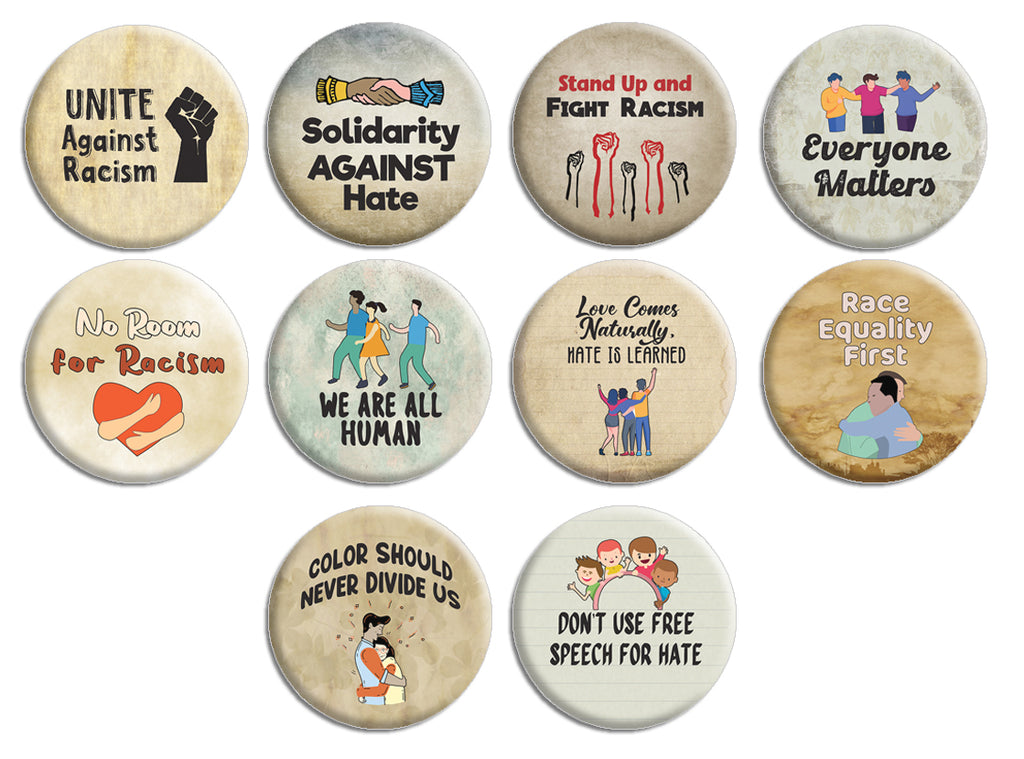 End Racism Pinback Button Badges (1-Set X 10 Buttons)