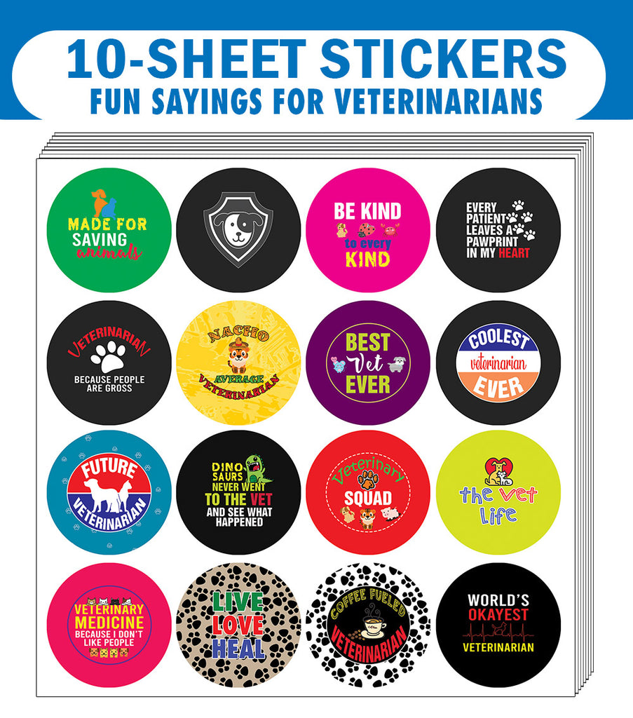 A fun, inexpensive way to add a decorative, notes, and stationery. Delight yourself with uplifting messages designs that are very encouraging. I am a Veterinarian Stickers (10 Sets X 16 Designs) perfect for giveaways, behavior incentives, prizes! These stickers are acid-free, nontoxic, and safe for use on photos.