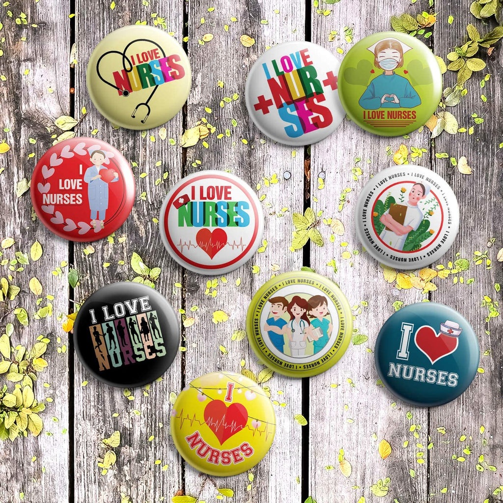 I love Nurses Pinback Buttons (10 Pack) - Large 2.25" Boys and Girls Cute Designs Button pins ASIN:B08THDVFQ1