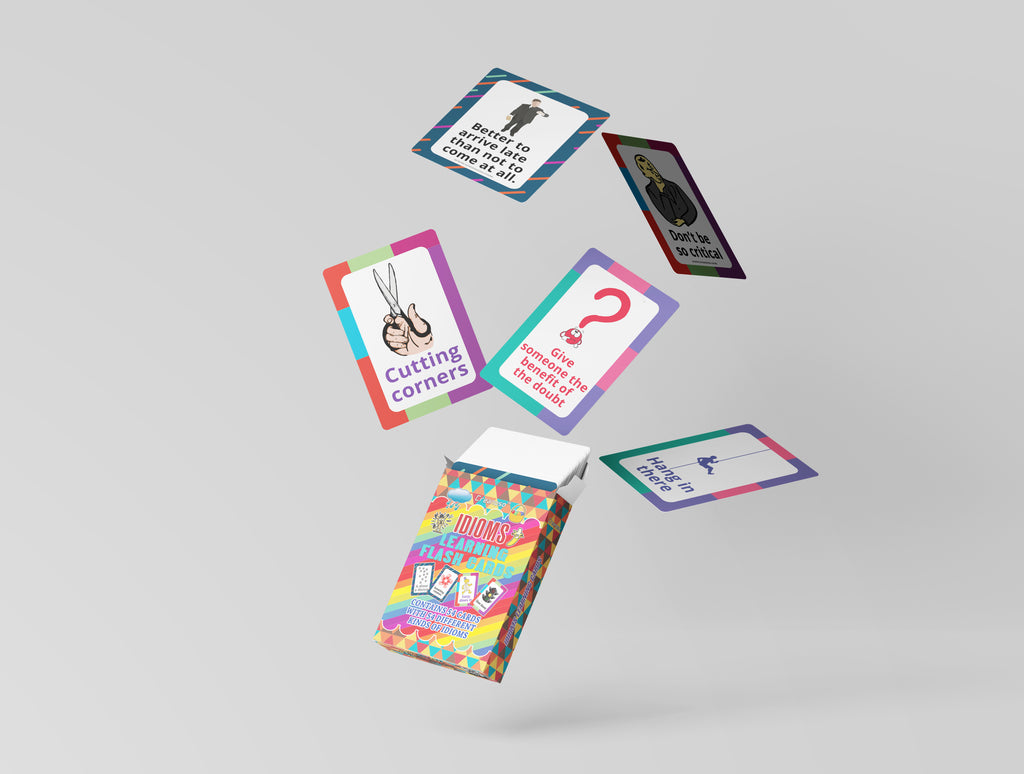 Idioms Learning Cards (4-Deck) Do you love to play cards and always rolls the dice? Well, this poker size playing deal cards deck set is a perfect complement for you. This deck cards set contains 54 pcs of playing cards inside 1 Deck - Idioms Learning Cards (4-Deck). This deck set contain colorful and vibrant visuals with Inspiring Quotes This set is also an ideal gift token giveaways to give to family, friends, and loved ones. Perfect for those who loves to play poker, blackjack, solitaire, and any other playing card games.