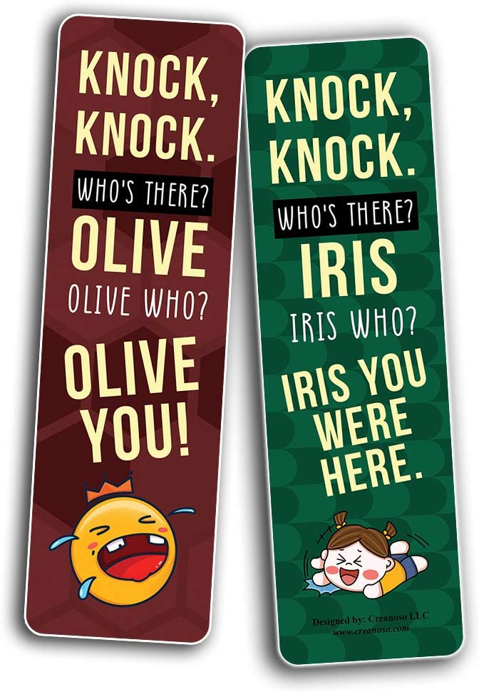 - Creanoso Knock Knock Jokes Bookmarks (30 Pack) - Assorted Gift Set Card Pack (6 Designs x 5 pcs each = Total 30 pcs)