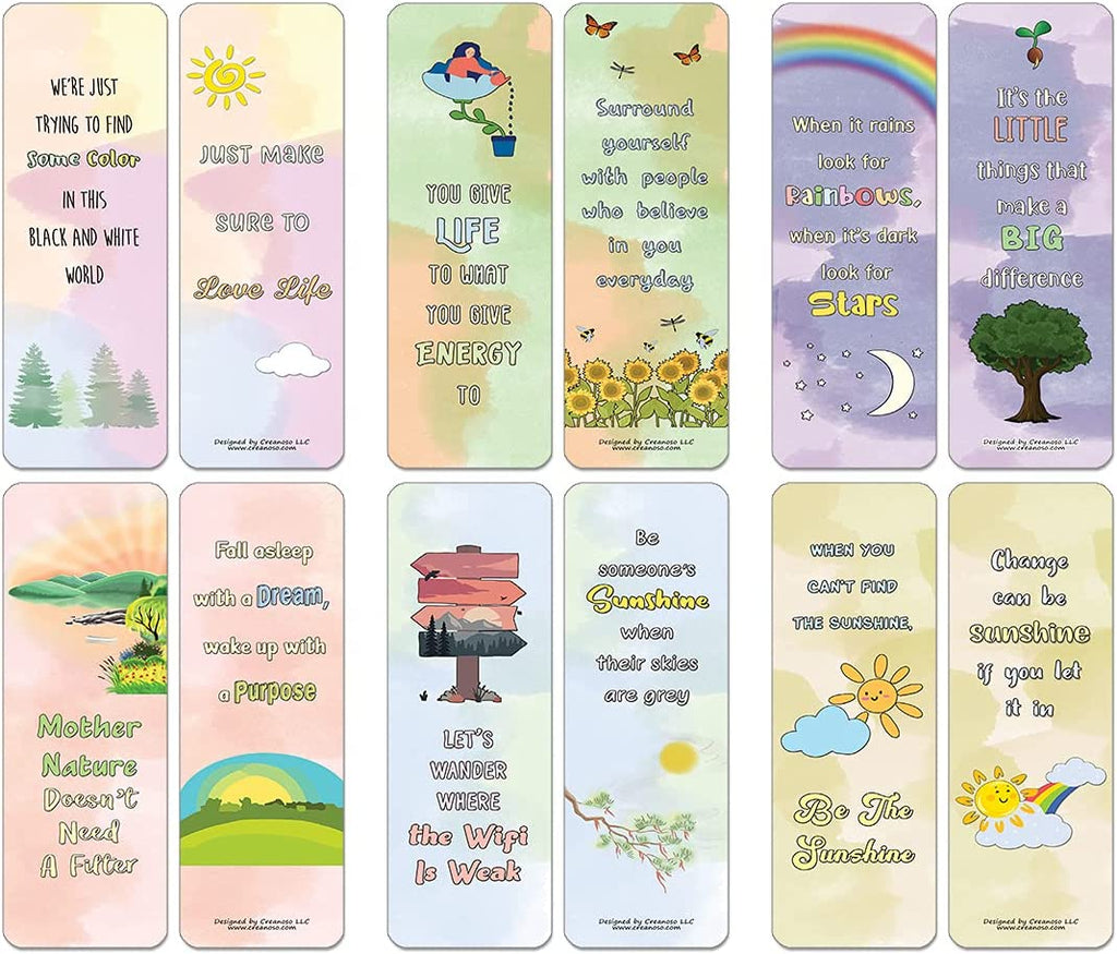 Motivational Watercolor Nature Bookmarks (2-sets X 6 Cards)
