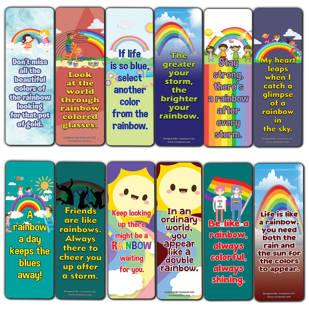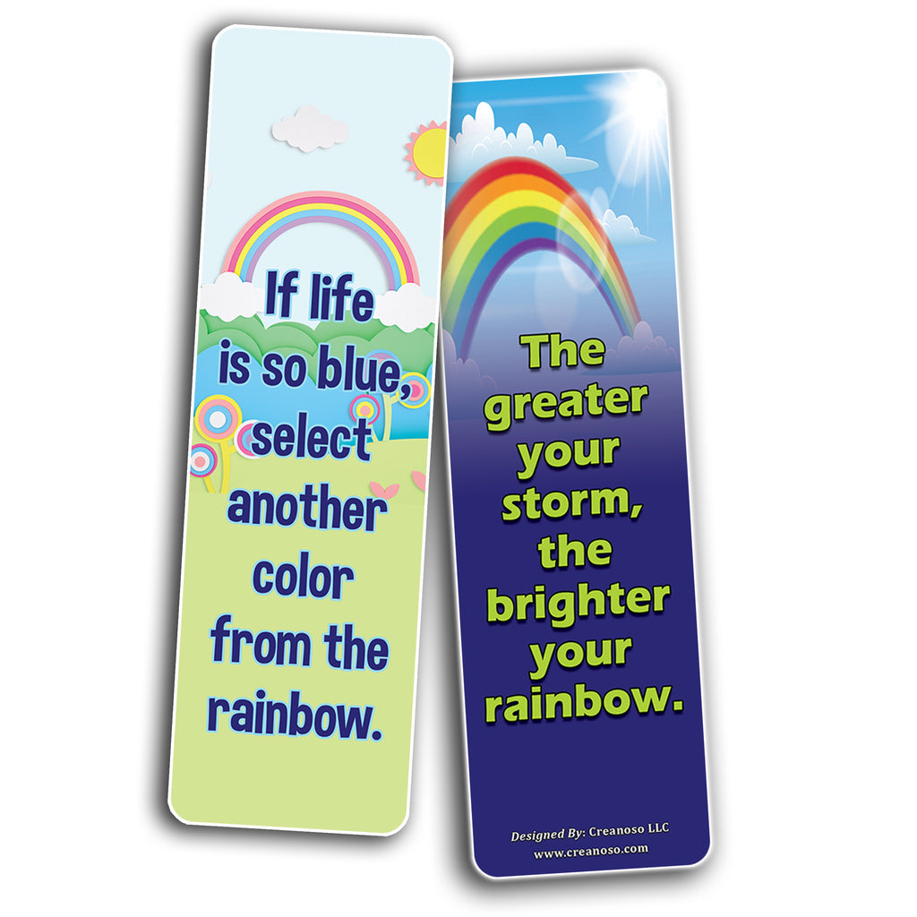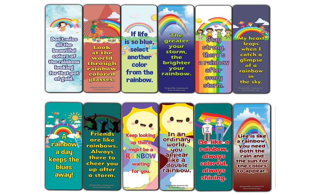 Positive Days Rainbow Bookmarks - (12 Pack) SIX inspirational reading rewards bookmark pack designed to encourage motivational reading and good reading habit. Reversible bookmarks with front and back designs.