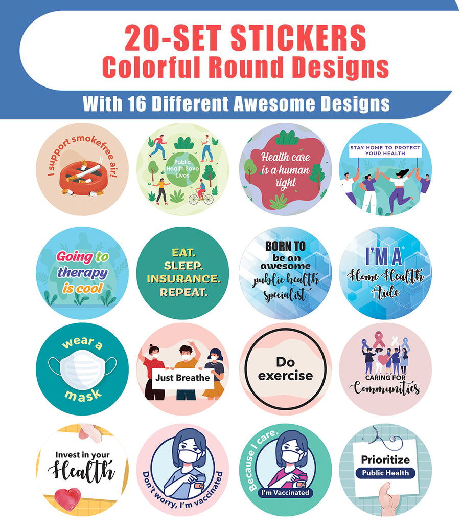 Public Health Stickers (20 Sets X 16 Designs) COLORFUL AND COLLECTION OF TEXT STICKERS