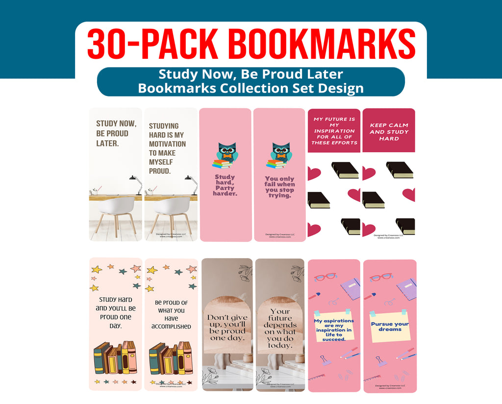 Study Now, Be Proud Later Bookmarks (5-Sets X 6 Cards)