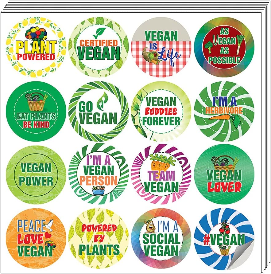 A fun, inexpensive way to add a decorative, notes, and stationery. Delight yourself with uplifting messages designs that are very encouraging. Vegan Stickers (10 Sets X 16 Designs) perfect for giveaways, behavior incentives, prizes! These stickers are acid-free, nontoxic, and safe for use on photos.